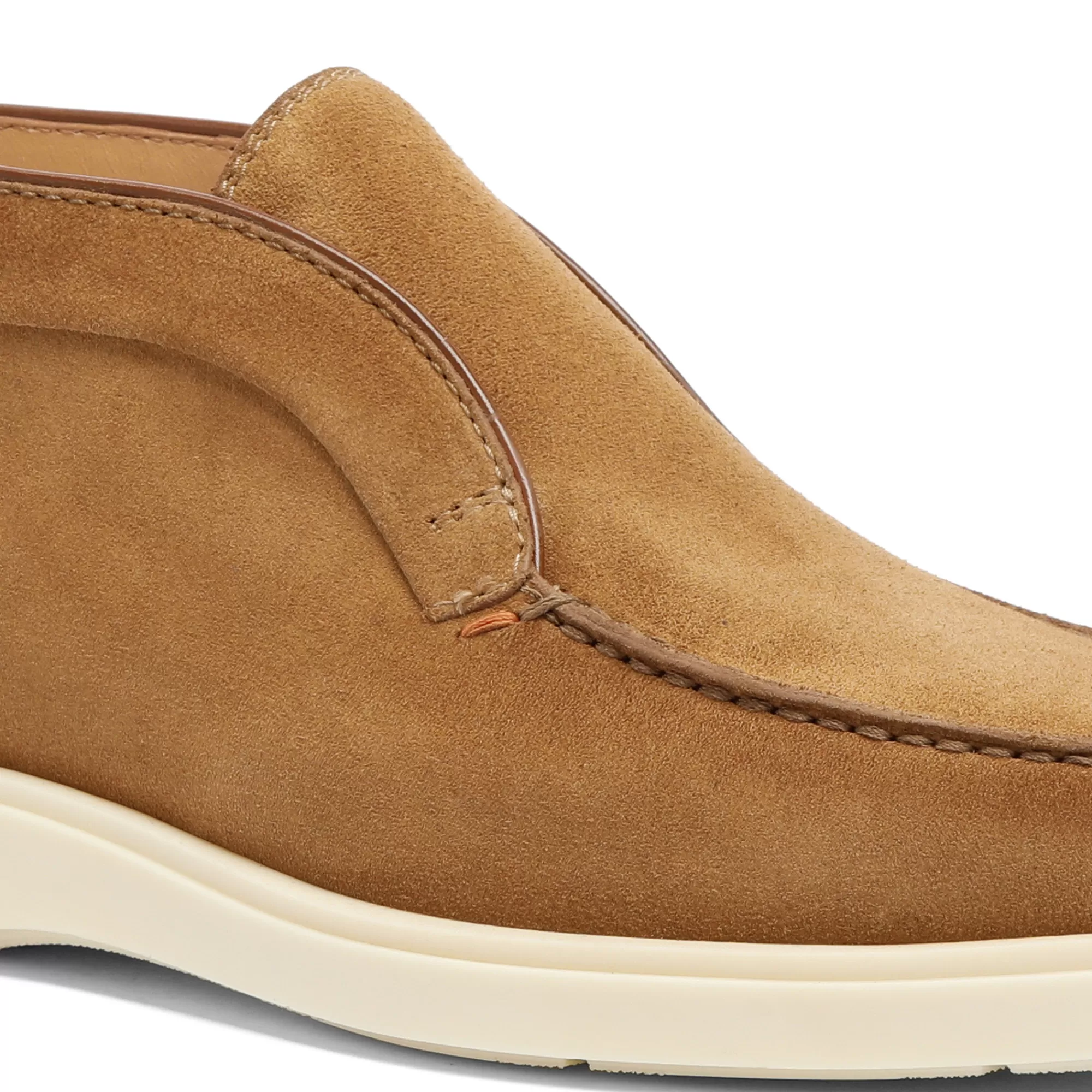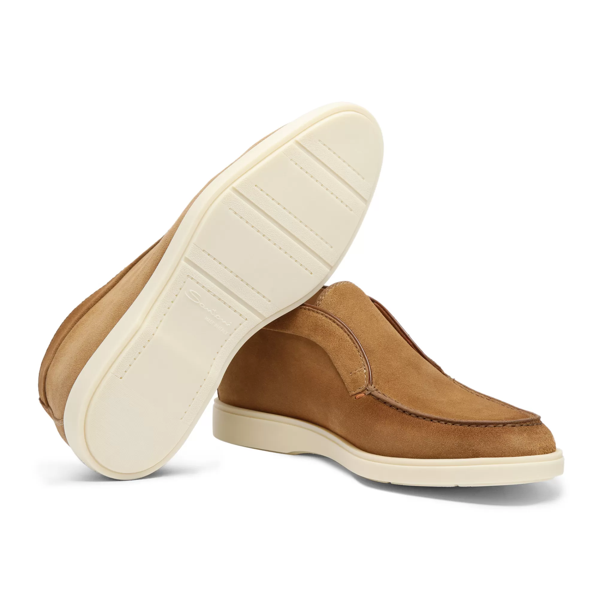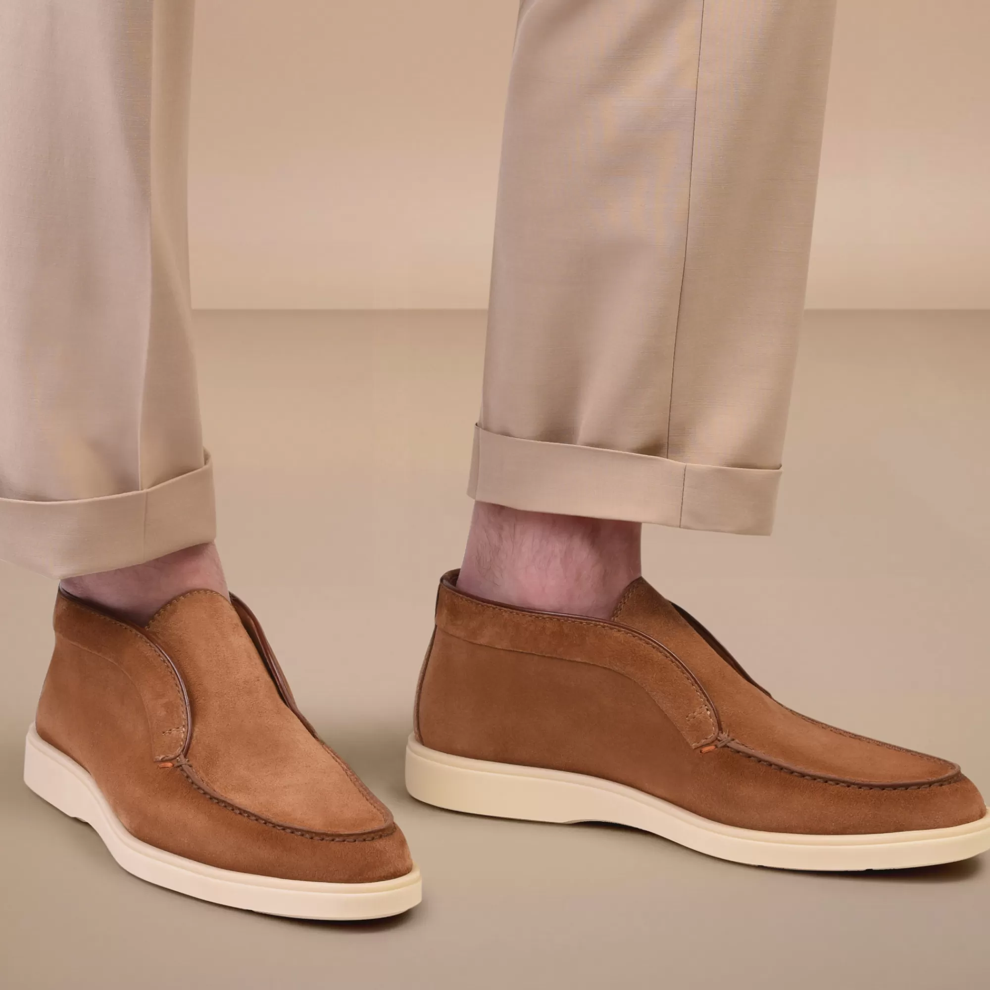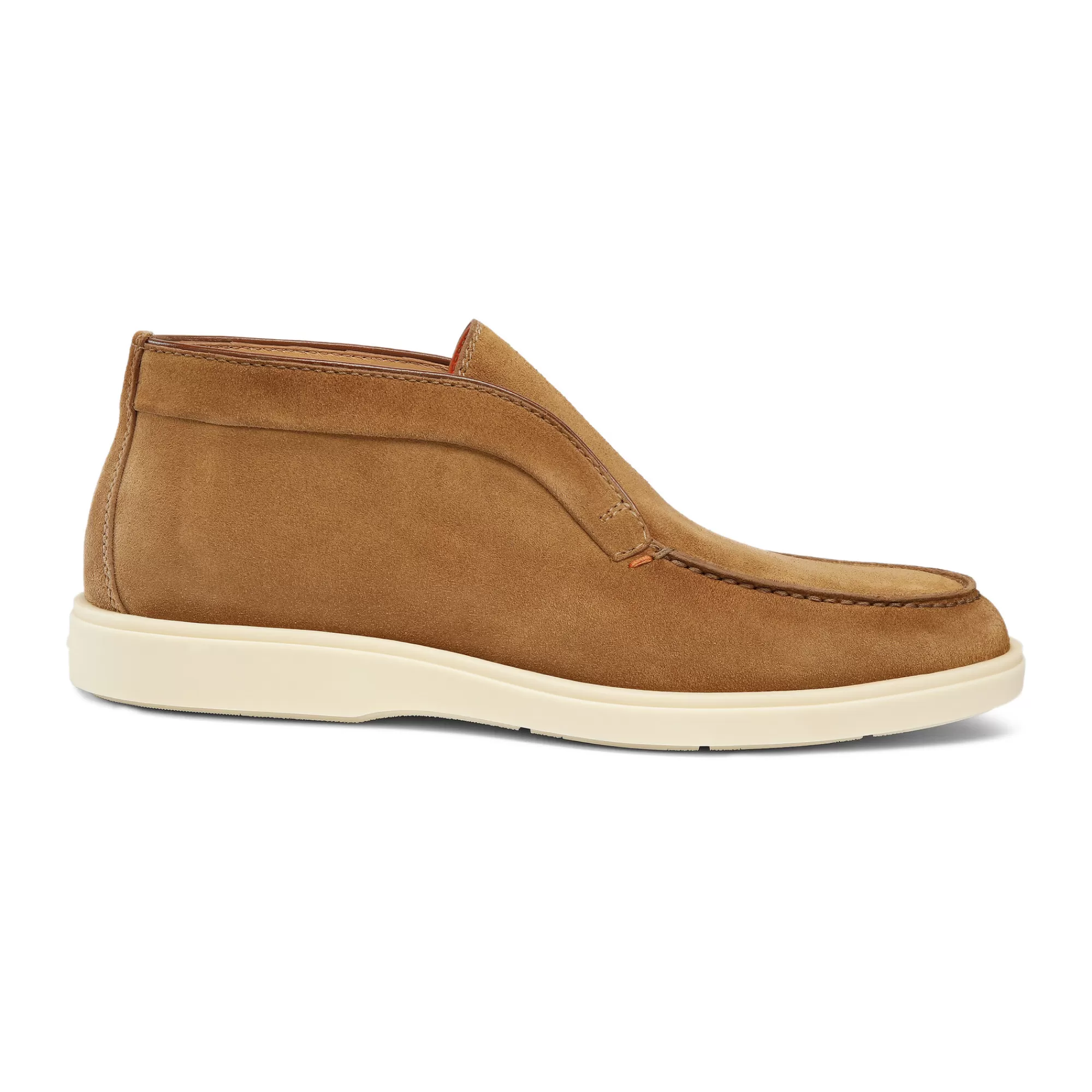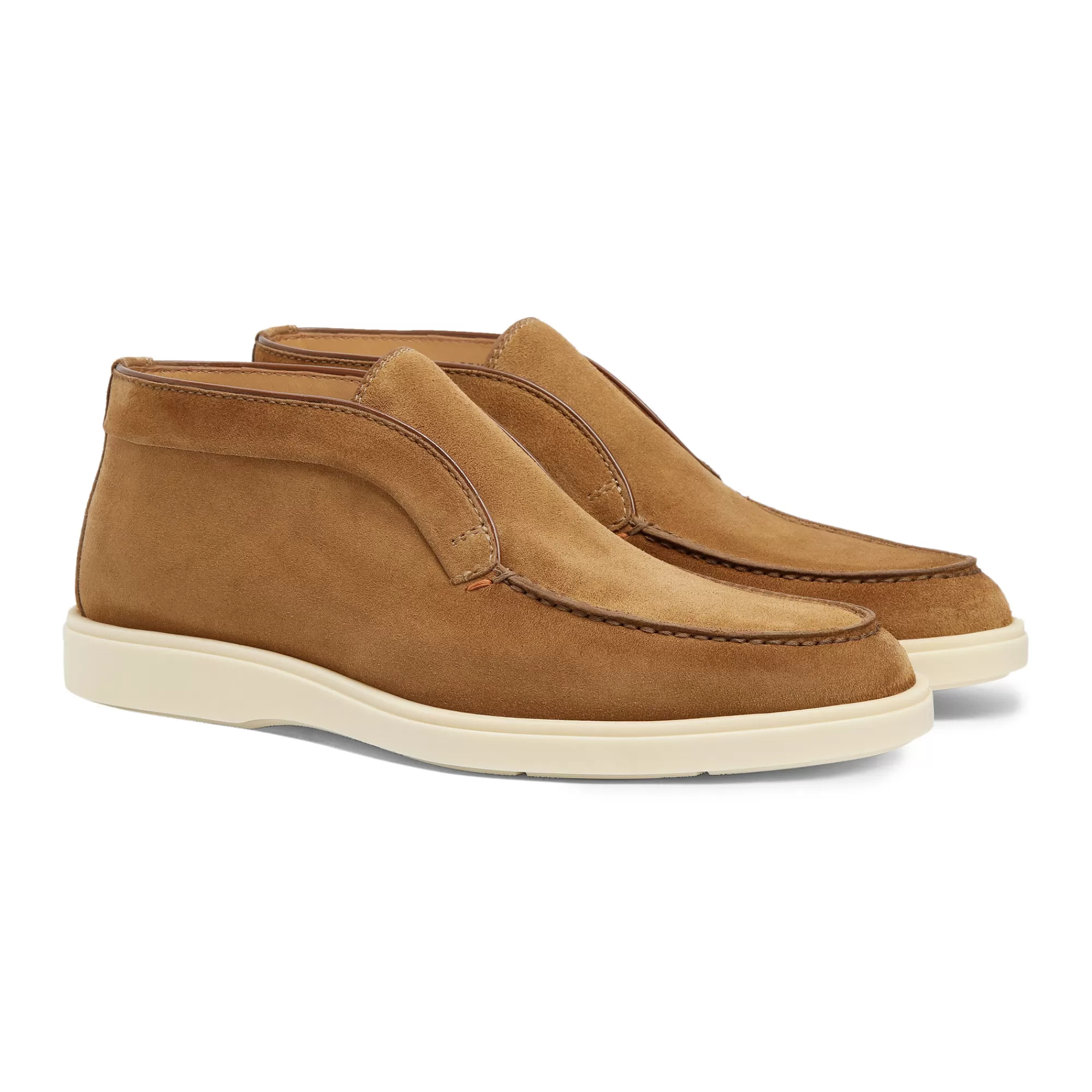 Praticità, leggerezza e cura dei dettagli che da sempre contraddistinguono la maison Santoni. Questo Desert Boot estremamente confortevole è realizzato in suede e presenta una cucitura a vaschetta. Il fondo in gomma a contrasto aggiunge al look un tocco moderno.