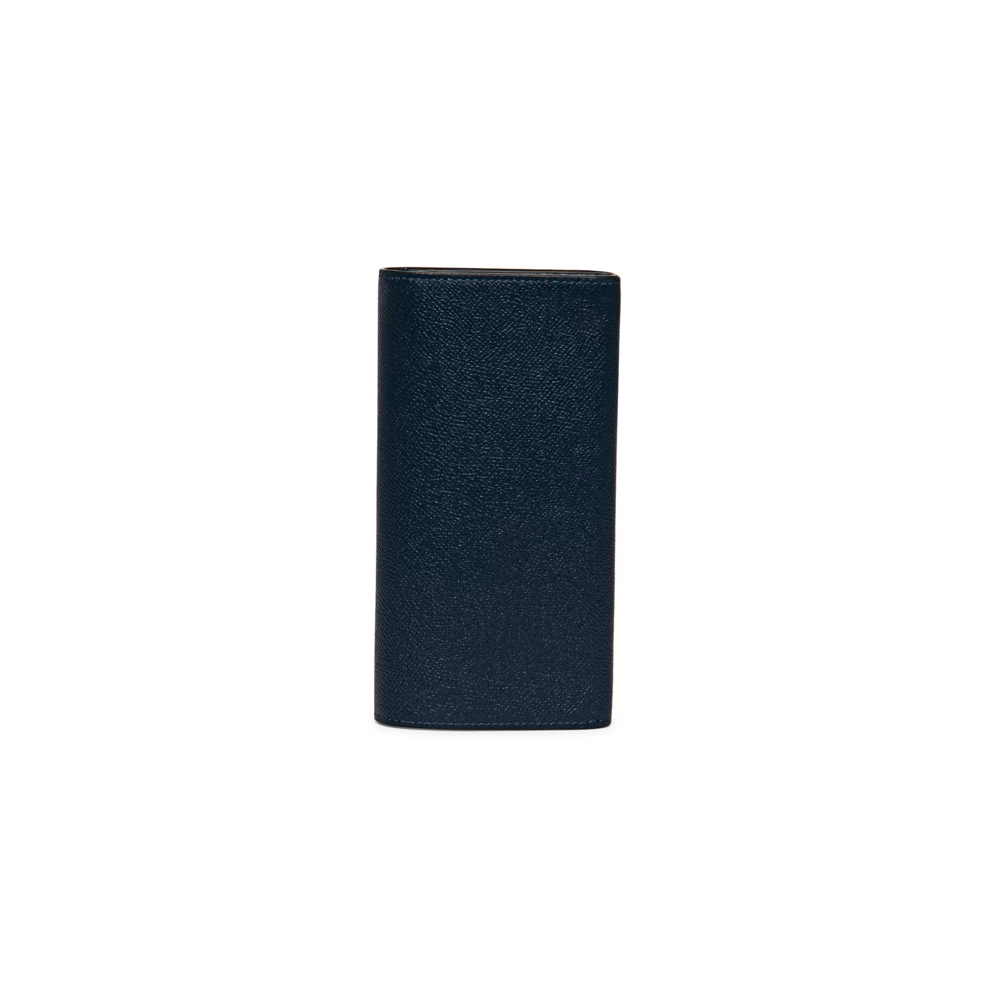 Un portafoglio che unisce il pregio delle lavorazioni Santoni con lo studio delle proporzioni. Il modello ha una linea slim e funzionale che si sviluppa in verticale ed si organizza con due ampi vani per le banconote e otto scomparti portacarte. Personalizzato con il lettering impresso in tonalità argento.