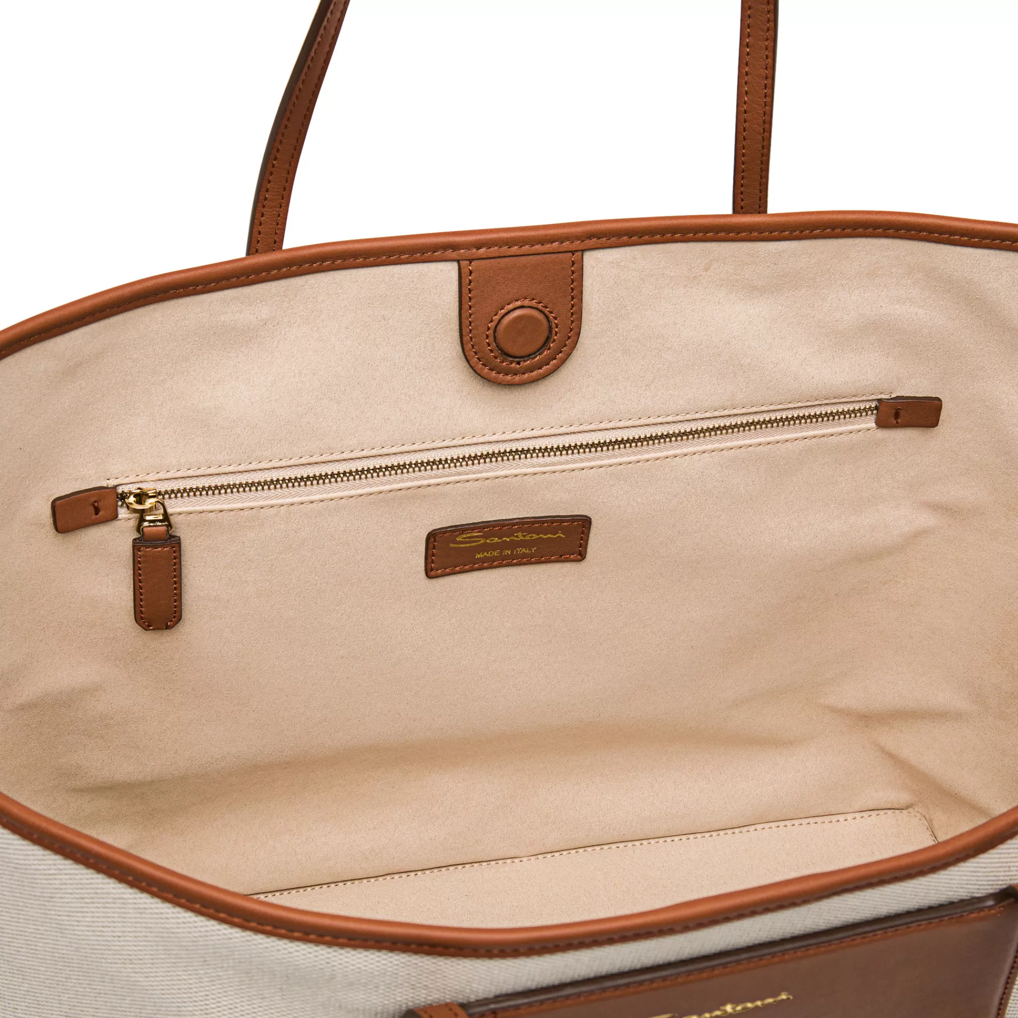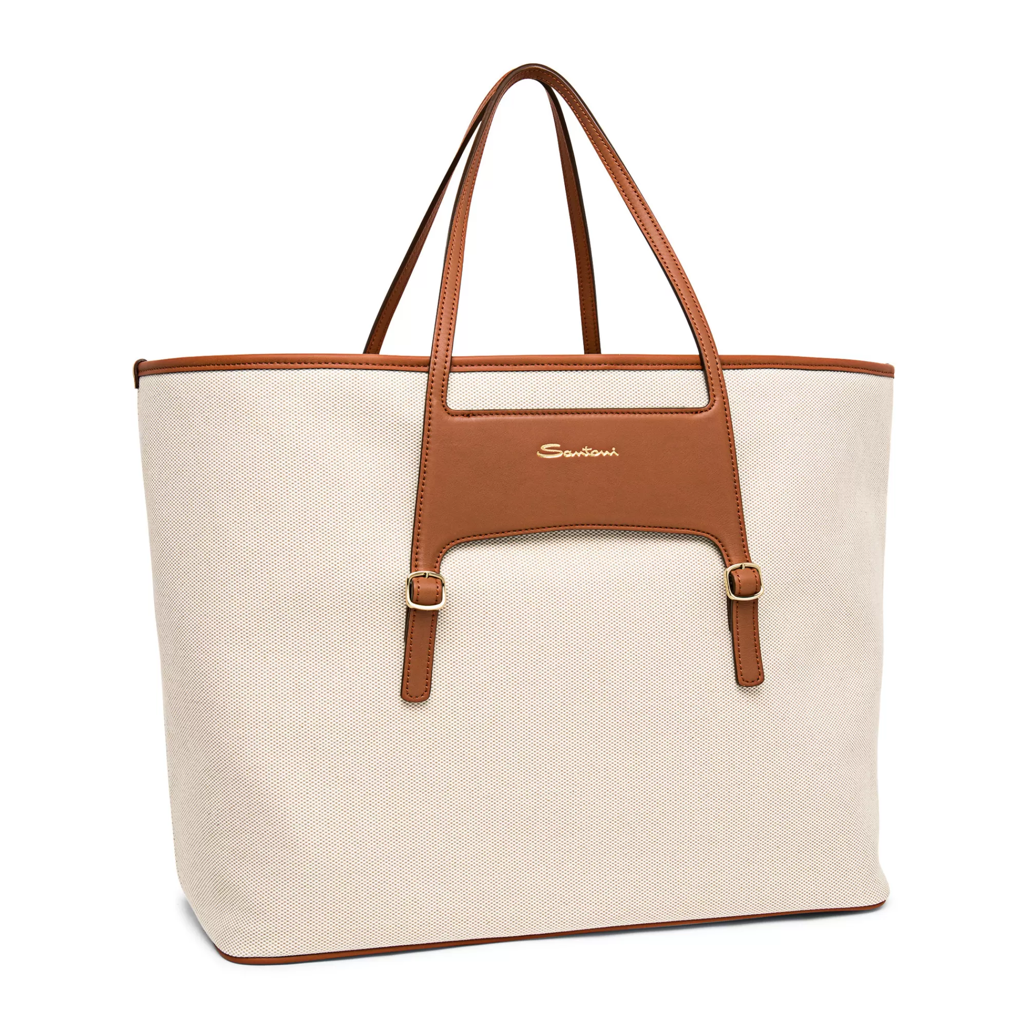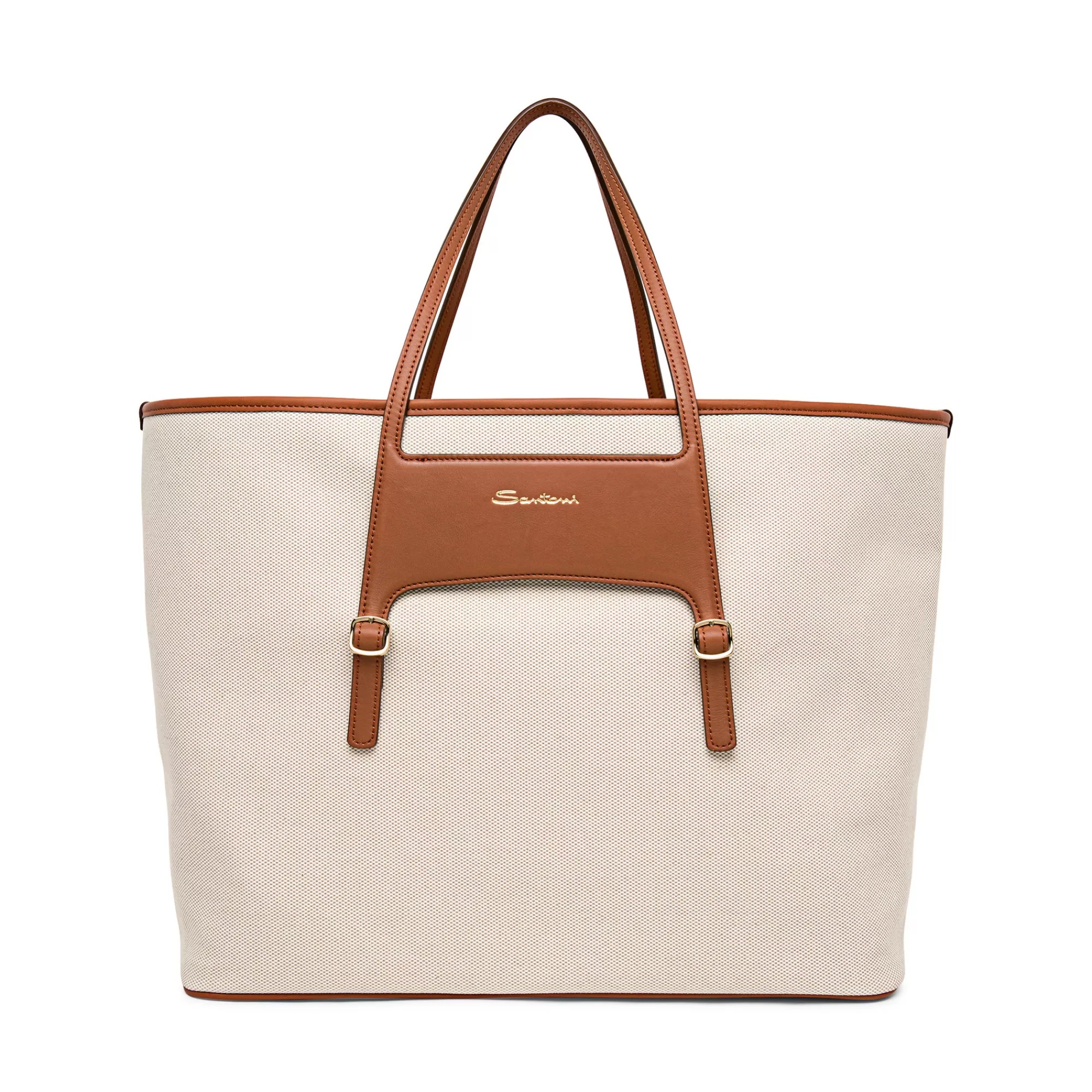 Santoni interpreta la tua voglia di leggerezza con una borsa shopping dall’estetica chic e disinvolta. Il modello è realizzato in canvas resistente ed è rifinito con i manici e la patta in pelle ispirati alle linee dell’iconica doppia fibbia. I profili e il fondo rivestiti in pelle danno un tocco grafico e ne definiscono il design.