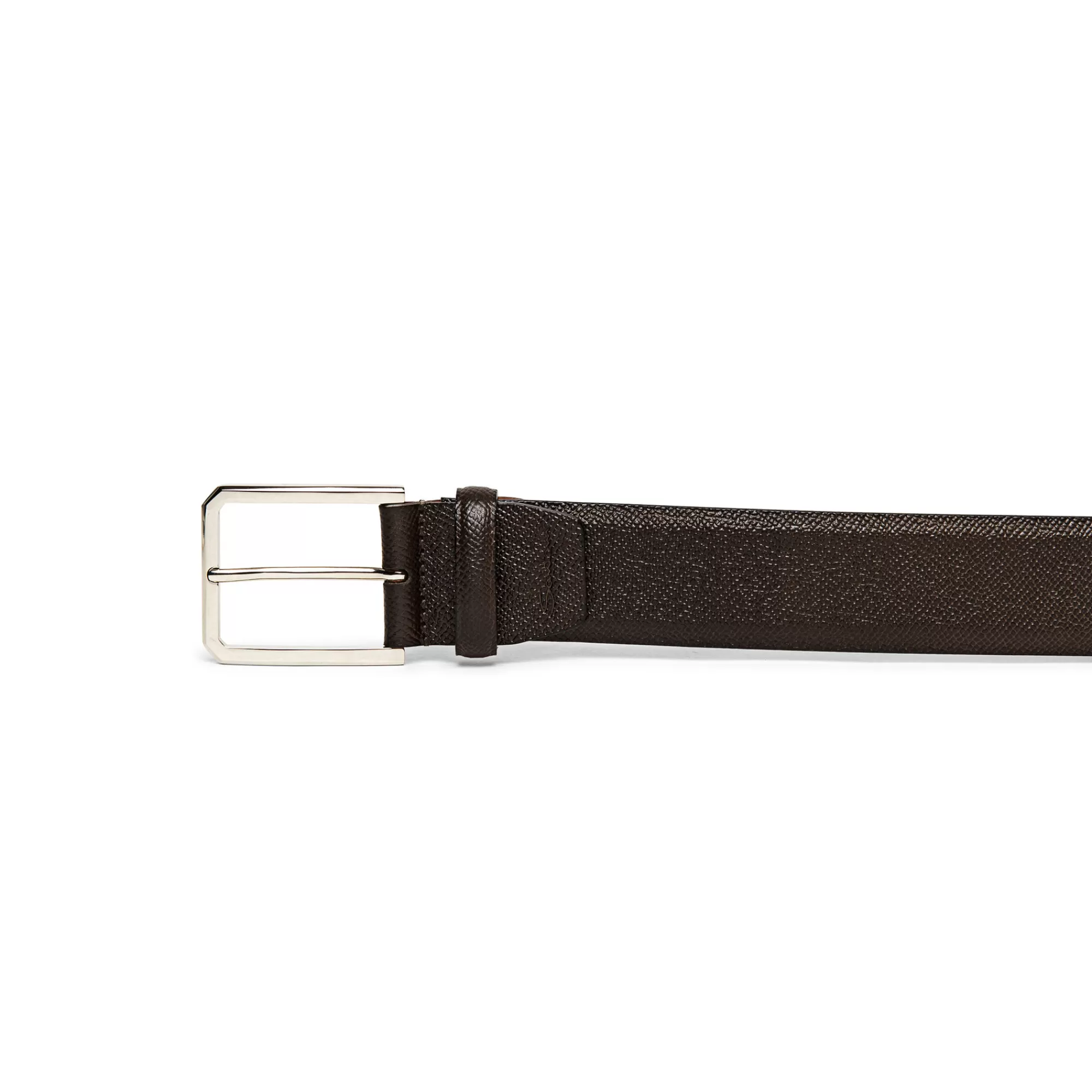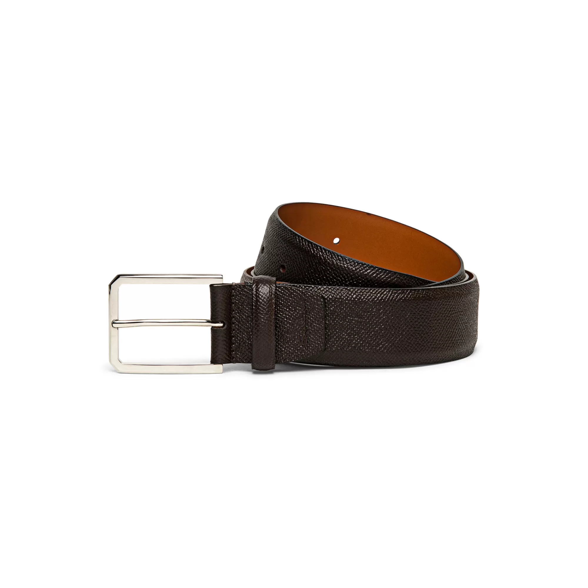 Questa cintura è un classico del guardaroba maschile e una sintesi elegante dei codici Santoni. Il modello è realizzato in pelle stampata a rilievo e si caratterizza per la fibbia squadrata in metallo che aggiunge un tocco luminoso.